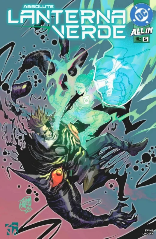 Absolute Lanterna Verde #5 DOWNLOAD SÉRIE ANTERIOR PRÓXIMA Ficha ▼ Título Original: Absolute Green Lantern Numeração: 05 DC Comics, Série de 2025, Volume 1 Data de Lançamento: Agosto de 2025 Iniciativa: DC All In Arco: Episódio Cinco: Com Medo Cronologia: Pós-Flashpoint Universo: Universo Absolute Sobre ▼ Episódio Cinco: Com Medo Absolute Lanterna Verde História em Quadrinhos 22 Páginas Título Original: Episode Five: With FearEscrito por: Al EwingDesenhos: Jahnoy LindsayArte-Final: Jahnoy LindsayCores: Jahnoy LindsayLetras: Lucas GattoniEditores: Ash Padilla (Editor Assistente); Andrew Marino (Editor); Katie Kubert (Editora de Grupo); Chris Conroy (Editor Executivo)Tradução: Mark GraysonDiagramação: Phantom Sinopse ▼ No deserto, Hal, agora monstruoso, ataca Jo, que revida e o arrasta para dentro da Lanterna Verde gigante. Lá dentro, eles encontram um conhecido que se revela como a voz que os guiava em um vazio negro. Capas ▼ Principal Desenhos: Jahnoy Lindsay Arte-Final: Jahnoy Lindsay Cores: Jahnoy Lindsay Personagens: Lanterna Verde (Jo Mullein); Hal Jordan _____________________________________ Variante Desenhos: Juliet Nneka Arte-Final: Juliet Nneka Cores: Juliet Nneka Personagens: Lanterna Verde (Jo Mullein) Nota: Esta capa possui uma variante sem logo. _____________________________________ Variante Desenhos: Tirso Cons Arte-Final: Tirso Cons Cores: Tirso Cons Personagens: Lanterna Verde (Jo Mullein) _____________________________________ Variante Desenhos: Alex Eckman-Lawn Arte-Final: Alex Eckman-Lawn Cores: Alex Eckman-Lawn Personagens: Lanterna Verde (Jo Mullein); Abin Sur _____________________________________ Aparecem na edição ▼ Sojourner Mullein /Lanterna Verde(Absolute) Hal Jordan /Mão Negra(Absolute) Hector Hammond(Absolute) Abin Sur(Absolute) Título Original: Absolute Green Lantern Numeração: 05 DC Comics, Série de 2025, Volume 1 Data de Lançamento: Agosto de 2025 Iniciativa: DC All In Arco: Episódio Cinco: Com Medo Cronologia: Pós-Flashpoint Universo: Universo Absolute Episódio Cinco: Com Medo Absolute Lanterna Verde História em Quadrinhos 22 Páginas Título Original: Episode Five: With FearEscrito por: Al EwingDesenhos: Jahnoy LindsayArte-Final: Jahnoy LindsayCores: Jahnoy LindsayLetras: Lucas GattoniEditores: Ash Padilla (Editor Assistente); Andrew Marino (Editor); Katie Kubert (Editora de Grupo); Chris Conroy (Editor Executivo)Tradução: Mark GraysonDiagramação: Phantom No deserto, Hal, agora monstruoso, ataca Jo, que revida e o arrasta para dentro da Lanterna Verde gigante. Lá dentro, eles encontram um conhecido que se revela como a voz que os guiava em um vazio negro. Principal Desenhos: Jahnoy Lindsay Arte-Final: Jahnoy Lindsay Cores: Jahnoy Lindsay Personagens: Lanterna Verde (Jo Mullein); Hal Jordan _____________________________________ Variante Desenhos: Juliet Nneka Arte-Final: Juliet Nneka Cores: Juliet Nneka Personagens: Lanterna Verde (Jo Mullein) Nota: Esta capa possui uma variante sem logo. _____________________________________ Variante Desenhos: Tirso Cons Arte-Final: Tirso Cons Cores: Tirso Cons Personagens: Lanterna Verde (Jo Mullein) _____________________________________ Variante Desenhos: Alex Eckman-Lawn Arte-Final: Alex Eckman-Lawn Cores: Alex Eckman-Lawn Personagens: Lanterna Verde (Jo Mullein); Abin Sur _____________________________________ Sojourner Mullein /Lanterna Verde(Absolute) Hal Jordan /Mão Negra(Absolute) Hector Hammond(Absolute) Abin Sur(Absolute) Comentários: