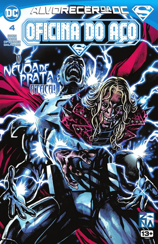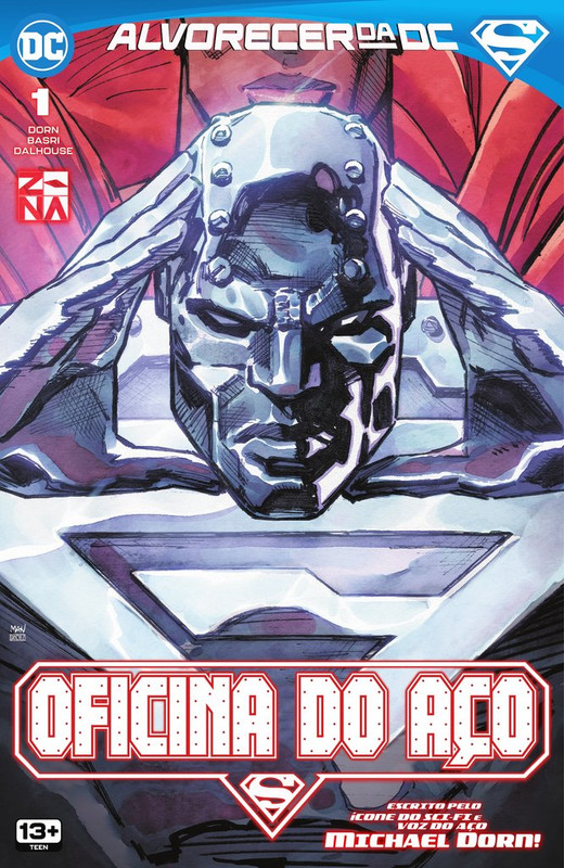 Oficina do Aço #4 DOWNLOAD SÉRIE EDIÇÃO: #5 Ficha: Título Original: Steelworks #4 Data de Lançamento: Setembro de 2023 Iniciativa: Alvorecer da DC Sobre: Oficina do Aço, Capítulo Quatro: Lockdown Título Original: Steelworks, Chapter Four: LockdownEscrito por: Michael DornDesenhos: Sami BasriArte-Final: Vicente CifuentesCores: Andrew DalhouseLetras: Rob LeighTradução: PhantomRevisão: Cruzado de CapaDiagramação: Phantom Sinopse: John Henry investiga as flutuações de poder de Natasha, Lana e da Superfamília e descobre que sua nova fonte de poder é a causa. No entanto, antes que ele possa tomar medidas para resolver o problema, a fonte de energia é roubada pela Névoa de Prata. Capas: Editores Jillian Grant (Editora Assistente); Paul Kaminski (Editor) Capa Desenhos: Eddy Barrows Arte-Final: Eddy Barrows Cores: Adriano Lucas Personagens: Aço (John Henry Irons); Névoa de Prata (Shawn Kerry) Capa Variante Desenhos: Sanford Greene Arte-Final: Sanford Greene Cores: Sanford Greene Personagens: Aço (John Henry Irons) Capa Variante Máscara Desenhos: Rafael Sarmento Arte-Final: Rafael Sarmento Cores: Rafael Sarmento Personagens: Aço (John Henry Irons) (Apenas a máscara) Aparecem: Aparecem em Oficina do Aço, Capítulo Quatro: Lockdown Personagens Principais: Aço (John Henry Irons) (Flashback e História Principal) Personagens Coadjuvantes: Super-Família Superboy (Conner Kent) (Flashback e História Principal) Supergirl (Kara Zor-El) Superman (Clark Kent) Super-Man (Kong Kenan) Superwoman (Lana Lang) (Flashback e História Principal) Antagonistas: Charles Walker III Névoa de Prata (Shawn Kerry) (Flashback e História Principal) Stax Robô carregado com a Gênese (Primeira Aparição) Outros Personagens: Departamento de Polícia de Metrópolis Unidade de Crimes Especiais de Metrópolis Aço (Natasha Irons) (Apenas em Flashback) Androides das Indústrias Walker (Apenas Mencionados) Locais: Terra 0 Terra Estados Unidos da América Metrópolis Torre da Oficina do Aço Sede da Corporação Walker Escritório de Charles Walker III Parque Centenário (Apenas Mencionado) Penitenciária da Ilha Stryker (Apenas Mencionada) Mundo Bélico (Apenas Mencionado) Itens: Núcleo da Energia Gênese Marreta Cinética (Flashback e História Principal) Armadura da Natasha (Apenas em Flashback) Traje do Névoa de Prata (Flashback e História Principal) Armadura do Aço (Flashback e História Principal) Drones Gênese da Oficina do Aço Veículos: — Conceitos: O Retorno do Superman (Apenas Mencionado) Dia do Superman (Apenas Mencionado) Notas: — Comentários: