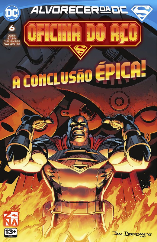 Oficina do Aço #6 DOWNLOAD SÉRIE EDIÇÃO: #2 Ficha: Título Original: Steelworks #6 Data de Lançamento: Novembro de 2023 Iniciativa: Alvorecer da DC Sobre: Oficina do Aço, Capítulo Seis: Multidões Título Original: Steelworks, Chapter Six: MultitudesEscrito por: Michael DornDesenhos: Sami BasriArte-Final: Vicente CifuentesCores: Andrew DalhouseLetras: Rob LeighTradução: PhantomRevisão: Cruzado de CapaDiagramação: Phantom Sinopse: O robô gigante de Walker ataca Metrópolis, e com a fonte de energia afetando os poderes da Super-Família, cabe a Aço e Lana encontrar uma maneira de parar Walker e o robô. Capas: Editores Jillian Grant (Editora Assistente); Paul Kaminski (Editor) Capa Desenhos: Jon Bogdanove Arte-Final: Jon Bogdanove Cores: Hi-Fi Personagens: Aço (John Henry Irons) Capa Variante Desenhos: V Ken Marion Arte-Final: Danny Miki Cores: Brad Anderson Personagens: Aço (John Henry Irons); Superboy (Conner Kent); Warrior (Guy Gardner); Lanterna Verde (Kyle Rayner); Batgirl (Cassandra Cain); Jade; Asa Noturna (Dick Grayson); Batman (Jean-Paul Valley); Supergirl (Matriz; Linda Denvers); Impulso (Bart Allen); Arqueiro Verde (Connor Hawke); Robin (Tim Drake); Bloodwind (J’onn J’onzz); Moça-Maravilha (Cassandra Sandsmark) Capa Variante Desenhos: Jerry Gaylord Arte-Final: Jerry Gaylord Cores: Jerry Gaylord Personagens: Aço (John Henry Irons) Aparecem: Aparecem em Oficina do Aço, Capítulo Seis: Multidões Personagens Principais: Aço (John Henry Irons) (Flashback e História Principal) Personagens Coadjuvantes: Névoa de Prata (Shawn Kerry) (Flashback e História Principal) Aço (Natasha Irons) (Flashback e História Principal) Seguranças da Oficina do Aço Super-Família Superboy (Conner Kent) (Flashback e História Principal) Supergirl (Kara Zor-El) Superman (Clark Kent) (Flashback e História Principal) Superman (Jon Kent) Super-Man (Kong Kenan) Super-Gêmeos Osul-Ra Otho-Ra Superwoman (Lana Lang) Antagonistas: Charles Walker III (Flashback e História Principal) Stax Robô carregado com a Gênese Outros Personagens: Caveira Atômica Locais: Terra 0 Terra Estados Unidos da América Metrópolis Torre da Oficina do Aço (Flashback e História Principal) Indústrias Amertek (Flashback e História Principal) Planeta Diário Mundo Bélico (Apenas Mencionado) Itens: Núcleo da Gênese Marreta Cinética Armadura da Natasha (Flashback e História Principal) Traje do Névoa de Prata Armadura do Aço (Flashback e História Principal) Veículos: — Conceitos: Dia do Superman (Apenas Mencionado) Revolução do Mundo Bélico (Apenas Mencionado) Notas: Última edição. Comentários:
