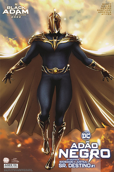 Adão Negro: Os Arquivos da Sociedade da Justiça: SENHOR DESTINO DOWNLOAD SÉRIE Ficha: Título Original: Black Adam: The Justice Society Files: Dr. Fate #1 Data de Lançamento: Outubro de 2022 Editora: DC Comics Sobre: Senhor Destino Título Original: Sem títuloEscritor: Cavan ScottDesenhista: Jesús MerinoArte-Final: Jesús MerinoCores: Ulises ArreolaLetras: ?Editores: Michael McCalister (Editor); Katie Kubert (Editora Senior)Tradução: Piper FayaDiagramação: ArthurFMG Sinopse: Senhor Destino deve parar um demônio que é invocado inadvertidamente por um grupo de adolescentes. Capas: Desenhos: Kaare Andrews Arte-Final: Kaare Andrews Cores: Kaare Andrews Personagens: Senhor Destino (Kent Nelson; Nabu) Capa Variante Foto Desenhos: — Arte-Final: — Cores: — Personagens: Senhor Destino (Kent Nelson; Nabu) Aparecem: Aparecem em Senhor Destino Personagens Principais: Senhor Destino (Kent Nelson) (Primeira Aparição Completa) (Flashback e História Principal) Nabu (Nos bastidores) Personagens Coadjuvantes: Carrie (Possuída) (Morre) (Ressuscitada) Dexter Renee Kevin Antagonistas: Adão Negro (Teth-Adam) (Primeira Aparição como Adão Negro) (Em uma visão) Demônio não nominado (Primeira Aparição) (Também em uma visão) Outros Personagens: Sociedade da Justiça (Também em uma visão) Esmaga Átomo (Al Rothstein) (Também em uma visão) Ciclone (Maxine Hunkel) (Também em uma visão) Gavião Negro (Carter Hal) (Flashback e História Principal) (Também em uma visão) Fantasmas (Apenas Mencionados) Lordes do Caos (Apenas Mencionados) Lordes da Ordem (Apenas Mencionados) Locais: Universo DC Estendido Estados Unidos da América Torre do Destino Itens: Elmo do Destino Metal Enésimo Maça do Gavião Negro Conceitos: Magia Notas: Conexão com o filme Adão Negro. Todas as primeiras aparições referem-se ao Universo Estendido DC. Achados & Perdidos – Capítulo 4 de 4 Título Original: Lost & Found Chapter 4 of 4Escritor: Bryan Q. MillerDesenhista: Marco SantucciArte-Final: Marco SantucciCores: Michael AtiyehLetras: Rob LeighEditores: Michael McCalister (Editor)Tradução: Piper FayaDiagramação: ArthurFMG Sinopse: Adrianna luta contra seus captores da Intergangue para escapar e se reunir com Amon e Karim e o artefato Eternium. Aparecem em Achados & Perdidos – Capítulo 4 de 4 Personagens Principais: Adrianna Thomaz Teth-Adam (Apenas em Flashback) Personagens Coadjuvantes: Amon Tomaz Hurut (Apenas em Flashback) Karim Tomaz Antagonistas: Senhor Mannheim (Nos bastidores) Intergangue “Jumbo” Outros Personagens: — Locais: Universo Estendido DC Kahndaq (Flashback e História Principal) Pedra da Eternidade Itens: Eternium Notas: Conexão com o filme Adão Negro. A história continua no filme Adão Negro. Comentários:
