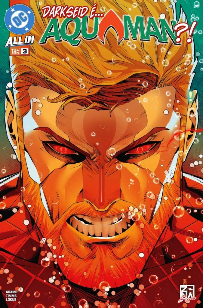 Aquaman #2 DOWNLOAD SÉRIE EDIÇÃO: #3 Ficha: Título Original: Aquaman #2 Numeração Legada: — DC Comics, Série de 2024, Volume 9 Data de Lançamento: Fevereiro de 2025 Iniciativa: DC All In Arco: A Maré Crescente Cronologia: Pós-Flashpoint Universo: Terra 0 Capa: Desenhos: John Timms Arte-Final: John Timms Cores: John Timms Personagens: Aquaman (Arthur Curry) Capa Variante Desenhos: Marcio Takara Arte-Final: Marcio Takara Cores: Marcio Takara Personagens: Mera Capa Variante Desenhos: Lucas Meyer Arte-Final: Lucas Meyer Cores: Lucas Meyer Personagens: Aquaman (Arthur Curry) Capa Variante Desenhos: Tula Lotay Arte-Final: Tula Lotay Cores: Tula Lotay Personagens: Mera Capa Variante Desenhos: Salvador Larroca Arte-Final: Salvador Larroca Cores: Pasquale Ferrara Personagens: Mera História: A Maré Crescente – Parte Dois Aquaman História em Quadrinhos 20 Páginas Título Original: The Rising Tide Part TwoEscrito por: Jeremy AdamsDesenhos: John TimmsArte-Final: John TimmsCores: Rex LokusLetras: Dave SharpeEditora: Marquis Draper (Editor); Paul Kaminski (Editor de Grupo)Tradução: General Dru ZodDiagramação: Absolute Jordan Sinopse: Em busca de Mera e do povo de Atlântida, Aquaman viaja através de um portal dimensional, onde é mantido prisioneiro pelo governante daquele reino. Aparecem: Aparecem em A Maré Crescente – Parte Dois Personagens Principais: Aquaman (Arthur Curry) (Flashback e História Principal) Personagens Coadjuvantes: Arion Antagonistas: Dagon (Nos bastidores) Jenny Greenteeth (Primeira Aparição) Grindylow (Primeira Aparição) Lagartos alienígenas (Não Nominados) “Lady” (Não Nominada) (Possuída) Outros Personagens: Família Aquaman (Apenas Menção) Mera (Apenas Menção) Atlantes (Apenas Menção) Novos Deuses (Apenas Menção) Darkseid (Apenas Menção) Locais: Multiverso-1 (Nos bastidores) Esfera dos Deuses Reino aquático não nominado (Primeira Aparição) Castelo da Jenny Greenteth (Primeira Aparição) Paraíso (Apenas Menção) Terra 0 Terra Atlântida (Deslocada) (Apenas Menção) Hipertempo A Confluência (Apenas Menção) Itens: Portal Ômega (Não Nominado) Tridente de Poseidon (Apenas Menção) Veículos: — Eventos: — Conceitos: O Azul (Apenas Menção) O Verde (Apenas Menção) Magia Meta-Humanos O Vermelho Força Ômega Notas: — Comentários: