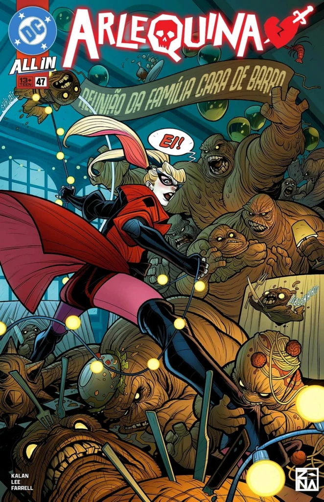 Arlequina #6 DOWNLOAD SÉRIE Ficha: Título Original: Harley Quinn #47 Numeração Legada: — DC Comics, Série de 2021, Volume 4 Data de Lançamento: Janeiro de 2025 Iniciativa: DC All In Arco: — Cronologia: Pós-Flashpoint Universo: Terra 0 Sobre: Os Originais Reis do Barro Arlequina História em Quadrinhos 22 Páginas Título Original: The Original Kings of ClayEscrito por: Elliot KalanDesenhos: Mindy LeeArte-Final: Mindy LeeCores: Tríona FarrellLetras: Lucas GattonniEditores: James Reid (Editor Assistente); Arianna Turturro (Editora); Rob Levin (Editora de Grupo)Tradução: Mark GraysonDiagramação: Absolute Jordan Sinopse: Em breve Capas: Desenhos: Elizabeth Torque Arte-Final: Elizabeth Torque Cores: Dave McCaig Personagens: Arlequina (Harleen Quinzel); Cara-de-Barro Capa Variante Desenhos: David Nakayama Arte-Final: David Nakayama Cores: David Nakayama Personagens: Arlequina (Harleen Quinzel); Cara-de-Barro (Basil Karlo) Capa Variante Desenhos: Jorge Fornés Arte-Final: Jorge Fornés Cores: Jorge Fornés Personagens: Arlequina (Harleen Quinzel) Capa Variante Suéter Desenhos: Simone Di Meo Arte-Final: Simone Di Meo Cores: Simone Di Meo Personagens: Arlequina (Harleen Quinzel) Capa Variante Desenhos: Knight Zhang Arte-Final: Knight Zhang Cores: Knight Zhang Personagens: Arlequina (Harleen Quinzel) Aparecem: Aparecem em Os Originais Reis do Barro Personagens Principais: Arlequina (Harleen Quinzel) Personagens Coadjuvantes: Mãos de Galinha Associação de Comerciantes Varejistas do Monte Corta-Pescoço Dolores (Nome verdadeiro revelado) Antagonistas: Althea Klang Nowegosoe Dell Coleman (Dono da Synesthesia) A Fraternidade da Lama/Os Caras-de-Barro (Primeira Aparição) Cara-de-Barro (Basil Karlo) Cara-de-Barro (Cassius Payne) (Primeira Aparição) Cara-de-Barro (John Carlinger) (Primeira Aparição) Cara-de-Barro (Matt Hagen) Cara-de-Barro (Preston Payne) Cara-de-Barro (Todd Russell) (Primeira Aparição) Palhaço-de-Barro (Aparentemente morre) Lady Barro (Sondra Fuller) Outros Personagens: Srª Grimaldi Helena (Cabeça) Richie/”DJ Herói Local” (Nome verdadeiro revelado) Detetive Chimp (Apenas Menção) Golens (Apenas Menção) Hera Venenosa (Apenas Menção) Locais: Terra 0 Estados Unidos da América Gotham City Monte Corta-Pescoço Bloodstain Lane, 65 Agência Destrutiva Arlequina Torre Nowegosoe Synesthesia Itens: Marreta da Arlequina Veículos: — Eventos: Reunião dos Caras-de-Barro Conceitos: Meta-Humanos Notas: Esta história se passa em Dezembro de 2024, dias após o epílogo da edição anterior. Comentários: