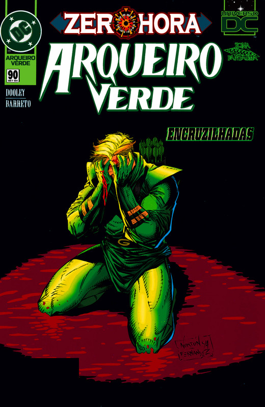 Arqueiro Verde #90 DOWNLOAD SÉRIE EDIÇÃO:#0 Ficha: Título Original: Green Arrow #90 Data de Lançamento: Agosto de 1994 Crossover: Zero Hora Sobre: Aquele Quer Hesita…” Título Original: He Who Hesitates…Escrito por: Kevin DooleyDesenhos: Eduardo BarretoArte-Final: Eduardo BarretoCores: Buzz SetzerLetras: John CostanzaEditores: Darren Vincenzo (Editor Assistente); Scott Peterson (Editor)Tradução: General Dru ZodDiagramação: Jordan Hal Sinopse: Seguindo duas linhas do tempo divergentes, o Arqueiro Verde persegue um bandido e em uma realidade escapa com vida e na outra é morto a tiros. De pé sobre seu próprio cadáver, o Arqueiro Verde é convocado por Batman para se juntar aos eventos de Zero Hora. Capas: Desenhos: Dan Norton Arte-Final: Gerry Fernandez Cores: Greystoke Personagens: Arqueiro Verde (Oliver Queen) Aparecem: Aparecem em “Aquele Que Hesita…” Personagens Principais: Arqueiro Verde (Oliver Queen) Personagens Coadjuvantes: Batman (Bruce Wayne) Antagonistas: Demônioz das Ruas Outros Personagens: Departamento de Polícia de Gotham City Locais: Gotham City Itens: — Veículos: — Conceitos: — Notas: — Comentários: