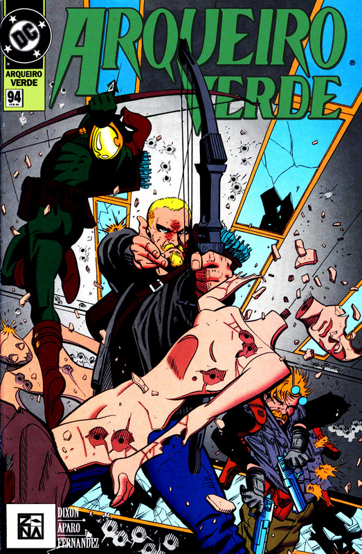 Arqueiro Verde #93 DOWNLOAD SÉRIE EDIÇÃO:#94 Ficha: Título Original: Green Arrow #93 Data de Lançamento: Agosto de 1994 Crossover: Zero Hora Sobre: Tripla Ameaça Título Original: Triple ThreatEscrito por: Chuck DixonDesenhos: Jim AparoArte-Final: Gerry FernandezCores: Lee LoughridgeLetras: John CostanzaEditores: Darren Vincenzo (Editor Assistente); Scott Peterson (Editor)Tradução: General Dru ZodDiagramação: Lucarys Sinopse: EM BREVE Capas: Desenhos: Dan Norton Arte-Final: Gerry Fernandez Cores: Greystoke Personagens: Arqueiro Verde (Oliver Queen) Aparecem: Aparecem em Tripla Ameaça Personagens Principais: Arqueiro Verde (Oliver Queen) Personagens Coadjuvantes: Connor Hawke Eddie Fyers Antagonistas: Agência de Segurança Nacional Borzoi Outros Personagens: Camuflagem (Primeira Aparição) Locais: Califórnia Itens: — Veículos: — Conceitos: — Notas: — Comentários: