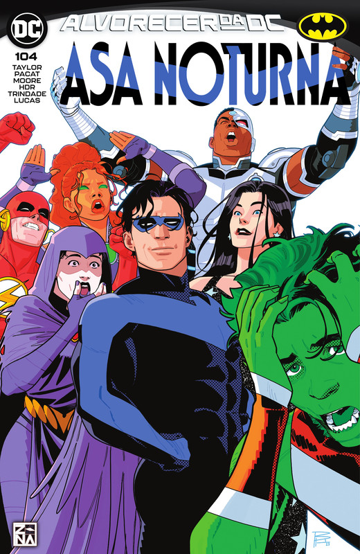 Asa Noturna #104 DOWNLOAD SÉRIE EDIÇÃO: #105 Ficha: Título Original: Nightwing #104 Numeração Legada: — DC Comics, Série de 2016, Volume 4 Data de Lançamento: Maio de 2023 Iniciativa: Alvorecer da DC Arco: A Ascensão do Submundo Cronologia: Pós-Flashpoint Universo: Terra 0 Capas: Desenhos: Bruno Redondo Arte-Final: Bruno Redondo Cores: Adriano Lucas Personagens: Titãs: Asa Noturna (Dick Grayson); Estelar; Ravena; Donna Troy; Cyborg; Flash (Wally West); Rapaz-Fera Capa Variante Reflexo Desenhos: Amancay Nahuelpan Arte-Final: Amancay Nahuelpan Cores: Adriano Lucas Personagens: Titãs: Asa Noturna (Dick Grayson); Estelar; Ravena; Donna Troy; Cyborg; Flash (Wally West); Rapaz-Fera; Haley, o Cão Capa Variante Desenhos: Jamal Campbell Arte-Final: Jamal Campbell Cores: Jamal Campbell Personagens: Titãs: Asa Noturna (Dick Grayson); Estelar; Ravena; Donna Troy; Cyborg; Flash (Wally West); Rapaz-Fera Capa Variante Asa Noturna/Batgirl Desenhos: Vasco Georgiev Arte-Final: Vasco Georgiev Cores: Vasco Georgiev Personagens: Asa Noturna (Dick Grayson); Batgirl (Silhueta) Sobre: A Ascensão do Submundo – Final Asa Noturna História em Quadrinhos 22 Páginas Título Original: Rise of the Underworld FinaleEscrito por: Tom TaylorDesenhos: Travis MooreArte-Final: Travis MooreCores: Adriano LucasLetras: Wes AbbottEditores: Jessica Berbey (Editora Assistente); Jessica Chen (Editora); Ben Abernathy (Editor de Grupo)Tradução: BxwayneRevisão: Cruzado de CapaDiagramação: Jordan Hal Sinopse: Neron tenta convencer Asa Noturna a abrir mão de seus direitos sobre Olivia, dando-lhe superpoderes. Aparecem: Personagens Principais: Asa Noturna/Superasa (Dick Grayson) Personagens Coadjuvantes: Amazonas de Themyscira Batgirl (Bárbara Gordon) Asa Canina (Haley) Arrasa Noturna (Olivia Desmond) (Primeira Aparição como Arrasa Noturna) Superman (Clark Kent) Titãs Rapaz-Fera Cyborg Donna Troy Flash (Wally West) Ravena Estelar Antagonistas: Neron Sorridente (Spencer) Demônios Doutor Polaris Gorila Grodd Outros Personagens: Blaze Trigon Arrasa Quarteirão (Roland Desmond) (Falecido) (Apenas Mencionado) Gigantes (Apenas Mencionados) Rainha Hipólita (Apenas Mencionada) Asa-Mirim (Quinta Dimensão) (Apenas Mencionado) Locais: Multiverso Terra 0 Terra Tailândia Província de Phang Nga Bangkok (Apenas Mencionado) Themyscira Praias de Themyscira Estados Unidos da América Bludhaven Prefeitura Metrópolis Planeta Diário Lua da Terra (Apenas Mencionada) Torre de Vigilância da Liga da Justiça (Apenas Mencionada) Força de Aceleração (Nos bastidores) Esfera dos Deuses Inferno Torre de Neron Submundo (Apenas Mencionado) Itens: Bat-Traje Bastões de Escrima do Asa Noturna Veículos: — Conceitos: Magia Notas: Esta história se passa antes dos eventos de Planeta Lázaro: A Vingança dos Deuses (2023) e Titãs (2023) #1. Uma Noite no Circo – Final Asa Noturna; Superman História em Quadrinhos 8 Páginas Título Original: Night at the Circus FinaleEscrito por: C. S. PacatDesenhos: Daniel HDRArte-Final: Jonas TrindadeCores: Adriano LucasLetras: Wes AbbottTradução: BxwayneRevisão: Cruzado de CapaDiagramação: Jordan Hal Sinopse: Dick e Jon localizam o responsável por plantar bombas no circo. Aparecem em Uma Noite no Circo – Final Personagens Principais: Asa Noturna/Robin (Dick Grayson) Superman/Superboy (Jon Kent) Personagens Coadjuvantes: Naomi, a Apresentadora Antagonistas: Brian Outros Personagens: Departamento de Polícia de Bludhaven Locais: Bludhaven Itens: — Veículos: — Conceitos: — Notas: — Comentários: