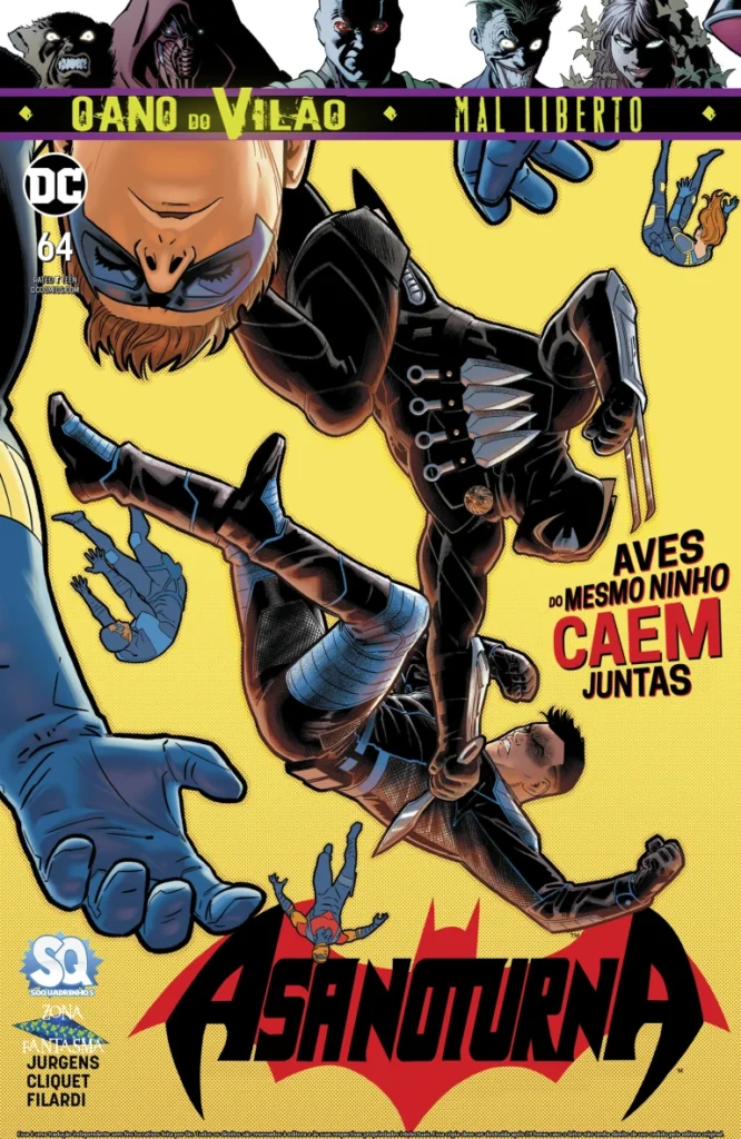 Asa Noturna #63 DOWNLOAD SÉRIE EDIÇÃO: #64 Ficha: Título Original: Nightwing #63 Numeração Legada: — DC Comics, Série de 2016, Volume 4 Data de Lançamento: Agosto de 2019 Iniciativa: Universo DC Crossovers:O Ano do VilãoDádivas Sombrias Cronologia: Pós-Flashpoint Universo: Terra 0 Sobre: Assuntos de Família Asa Noturna História em Quadrinhos 20 Páginas Título Original: Family MattersEscrito por: Dan JurgensDesenhos: Ronan CliquetArte-Final: Ronan CliquetCores: Nick FilardiLetras: AndWorld DesignEditores: Molly Mahan (Editora); Harvey Richards (Editor Associado); Jamie S. Rich (Editor de Grupo)Tradução: Wes KyleDiagramação: Donnie Sinopse: Em breve Capas: Desenhos: Bruno Redondo Arte-Final: Bruno Redondo Cores: Nick Filardi Personagens: Asa Noturna (Dick Grayson); Garra (William Cobb); Lex Luthor; Coringa; Leviatã Capa Variante Desenhos: Warren Louw Arte-Final: Warren Louw Cores: Warren Louw Personagens: Asa Noturna (Dick Grayson) Aparecem: Aparecem em Assuntos de Família Personagens Principais: Asa Noturna (Ric Grayson) Personagens Coadjuvantes: Bea Bennett Asas Noturnas Asa Noturna Dourada (Collen Edwards) Asa Noturna Azul (Zak Edwards) Asa Noturna Vermelha (Malcolm Hutch) Asa Noturna Primordial (Alphonse Sapienza) Antagonistas: Garra (William Cobb) Outros Personagens: Tiny Corpo de Bombeiros de Blüdhaven (Apenas Mencionado) Departamento de Polícia de Blüdhaven (Apenas Mencionado) John Grayson (Apenas Mencionado) KGBesta (Apenas Mencionado) Mary Grayson (Apenas Mencionada) Locais: Estados Unidos da América Blüdhaven Prefeitura de Blüdhaven Gotham City (Apenas em Flashback) Itens: Cajado de Batalha do Robin (Apenas na Capa) Veículos: — Conceitos: — Notas: — Comentários:
