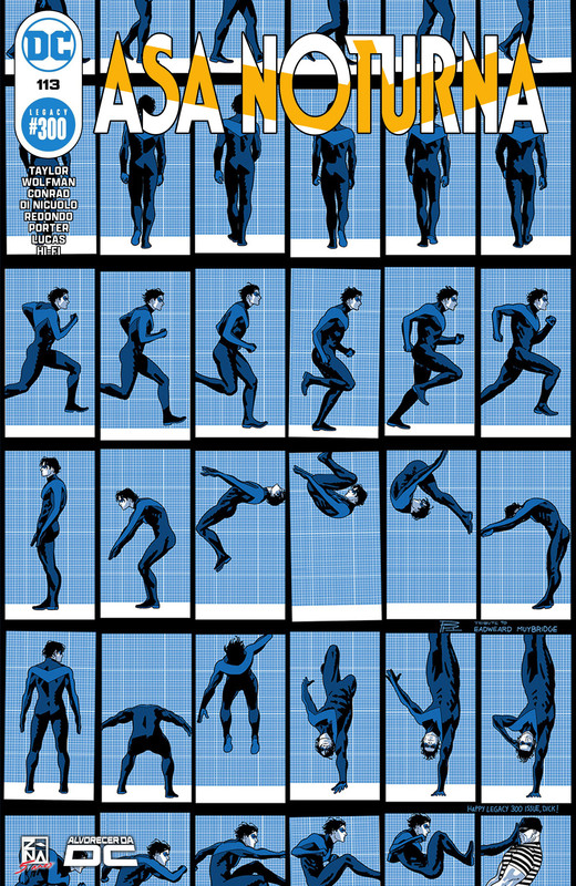 Asa Noturna #116 DOWNLOAD SÉRIE EDIÇÃO: #117 Ficha: Título Original: Nightwing #116 Numeração Legada: — DC Comics, Série de 2016, Volume 4 Data de Lançamento: Julho de 2024 Iniciativa: Alvorecer da DC Arco: Grayson Caído Cronologia: Pós-Flashpoint Universo: Terra 0 Capas: Desenhos: Bruno Redondo Arte-Final: Bruno Redondo Cores: Bruno Redondo Personagens: Desafiador Capa Variante Desenhos: Rian Gonzales Arte-Final: Rian Gonzales Cores: Rian Gonzales Personagens: Asa Noturna (Dick Grayson); Haley, o Cão; Batwoman (Kate Kane); Capuz Vermelho (Jason Todd); Robin (Tim Drake); Robin (Damian Wayne); Batgirl (Stephanie Brown); Batgirl (Barbara Gordon); Batgirl (Cassandra Cain); Ace, o Bat-Cão; Batman (Bruce Wayne); Titãs [Flash (Wally West); Cyborg; Donna Troy; Bestial (Garfield Logan); Ravena; Estelar] Capa Variante Desenhos: Vasco Georgiev Arte-Final: Vasco Georgiev Cores: Vasco Georgiev Personagens: Asa Noturna (Dick Grayson) Capa Variante Desenhos: Tirso Cons Arte-Final: Tirso Cons Cores: Tirso Cons Personagens: Asa Noturna (Dick Grayson); Haley, o Cão Sobre: Grayson Caído – Parte Três Asa Noturna História em Quadrinhos 22 Páginas Título Original: Fallen Grayson Part ThreeEscrito por: Tom TaylorDesenhos: Bruno RedondoArte-Final: Bruno RedondoCores: Adriano LucasLetras: Wes AbbottEditores: Jessica Berbey (Editora); Rob Levin (Editor de Grupo)Tradução: BxWayneDiagramação: Jordan Hal Sinopse: Dick, que foi preso por ser acusado de ser Sem Coração, escapa da custódia e sai correndo para encontrar Desafiador, a pessoa que ele acredita que pode ajudá-lo a superar seus medos para revidar o vilão. Enquanto isso, Barbara, Batman e os Titãs se preparam para tomar medidas para ajudar a proteger Dick. Aparecem: Aparecem em Grayson Caído – Parte Três Personagens Principais: Asa Noturna/”Robbie Malone” (Dick Grayson) (Flashback e História Principal) (Primeira Aparição como Robbie Malone) Personagens Coadjuvantes: Bat-Família Batgirl (Cassandra Cain) (Em uma tela de TV ou de computador) Batgirl (Stephanie Brown) (Em uma tela de TV ou de computador) Batman/Asa Noturna (Bruce Wayne) (Primeira Aparição como Asa Noturna) Oráculo (Barbara Gordon) (Flashback e História Principal) Capuz Vermelho (Jason Todd) (Em uma tela de TV ou de computador) Robin (Damian Wayne) (Em uma tela de TV ou de computador) Robin (Tim Drake) (Em uma tela de TV ou de computador) O Sinal (Duke Thomas) (Em uma tela de TV ou de computador) Capitã Blüd (Bea Bennett) Desafiador (Boston Brand) (Flashback e História Principal) Haley Prefeita Melinda Grayson-Lin (Flashback e História Principal) Audre Super-Família Superman (Jon Kent) (Em uma tela de TV ou de computador) Superman (Clark Kent) (Em uma tela de TV ou de computador) Titãs Bestial (Garfield Logan) Cyborg Donna Troy Flash (Wally West) Estelar Tempest (Garth) Antagonistas: Ravena Sombria (Personificando Ravena) Sem Coração (Shelton Lyle) (Personificando Dick Grayson) Exército Sem Coração Outros Personagens: Arrasa-Quarteirão (Roland Desmond) (Falecido) (Apenas em Flashback) Departamento de Polícia de Blüdhaven (Flashback e História Principal) Comissária Maggie Sawyer Detetive Dan Turpin George (Falecido) (Apenas em Flashback) Gil Maclean (Apenas em Flashback) Lex Media Martin Holt (Aparece apenas morto) (Apenas em Flashback) Prefeito de Blüdhaven (Não Nominado) (Morre em Flashback) Sr. Waghorne (Morre em Flashback) Tripulação das Chaves Cruzadas (Apenas Mencionada) O Homem Morto de Nanda Parbat (Apenas Mencionado) Graysons Voadores (Falecidos) (Apenas Mencionados) Jon Grayson (Falecido) (Apenas Mencionado) Mary Grayson (Falecida) (Apenas Mencionada) Fantasmas (Apenas Mencionados) Rama Kushna (Apenas Mencionada) Espantalho (Apenas Mencionado) Marido do Sr. Waghorne (Não Nominado) (Apenas Mencionado) Filhos do Sr. Waghorne (Não Nominados) (Apenas Mencionados) Locais: Terra 0 Ásia Himalaia Nanda Parbat Turquia Istambul Oceano Atlântico Europa Holanda Portugal América do Norte Estados Unidos da América Blüdhaven Avenida Parkthorne, 1013 (Apenas em Flashback) Prefeitura de Blüdhaven (Flashback e História Principal) Docas de Blüdhaven (Apenas em Flashback) Hospital Blüdhaven Sede da POlícia de Blüdhaven Paraíso (Apenas em Flashback) Marv e George Pizza (Apenas em Flashback) Torre Titã Gotham City (Apenas em Flashback) Circo Haly (Apenas em Flashback) Itens: Bat-Trajes Arma do Sem Coração (Apenas em Flashback) Caixa Materna (Nos bastidores) Toxina do Medo do Espantalho (Apenas Mencionada) Veículos: Navio do Aperto Conceitos: Mundo Bestial (Apenas Mencionado) Tubo de Explosão Magia Noite de Terror (Apenas Mencionada) Notas: Esta história revela que, algum tempo depois dos eventos de Terrores Noturnos, Rama Kushna trouxe Desafiador de volta do Céu, mas o amarrou a Nanda Parbat. Bea Bennett é erroneamente desenhada como uma mulher caucasiana em sua aparição especial. O pseudônimo de Asa Noturna, Robbie Malone, é obviamente uma referência ao famoso pseudônimo de Batman, Fósforos Malone. Comentários: