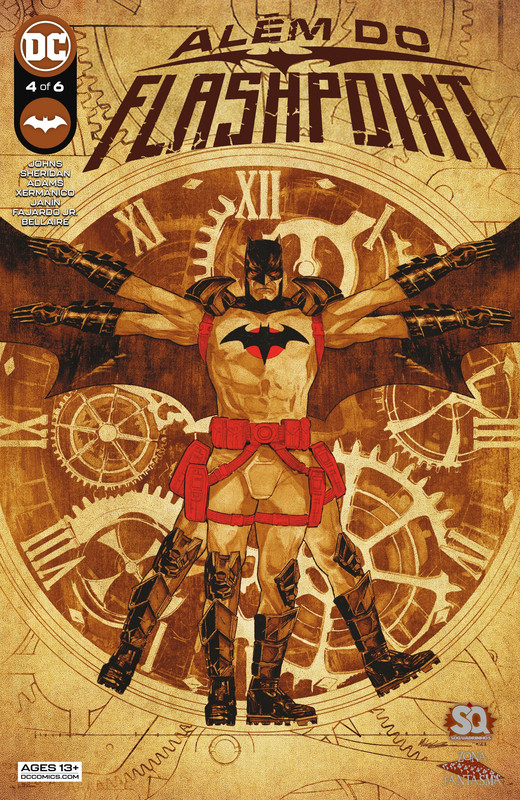 Além do Flashpoint #1 DOWNLOAD SÉRIE EDIÇÃO: #2 Ficha: Título Original: Flashpoint Beyond #1 Data de Lançamento: Maio de 2022 Sobre: O Relojoeiro Assassino – Capítulo Um Batman História em Quadrinhos 28 Páginas Título Original: The Clockwork Killer Chapter OneEscrito por: Geoff Johns; Jeremy Adams; Tim SheridanDesenhos: Xermanico; Mikel JanínArte-Final: Xermanico; Mikel JanínCores: Romulo Fajardo Jr.; Jordie BellaireLetras: Rob LeighTradução: General Dru ZodDiagramação: Jordan Hal Sinopse: Investigar quem contratou Escaravelho para matar Barry Allen leva Thomas a confrontar o Imperador Aquaman, mas Thomas primeiro recruta a Mulher-Maravilha para obter ajuda. Capas: Editores Marquis Draper (Editor Associado); Andrew Marino (Editor); Katie Kubert (Editora Senior) Capa Desenhos: Mitch Gerads Arte-Final: Mitch Gerads Cores: Mitch Gerads Personagens: Batman (Thomas Wayne) (Universo Flashpoint) Capa Variante Batman e Imperador Aquaman Desenhos: Xermanico Arte-Final: Xermanico Cores: Xermanico Personagens: Batman (Thomas Wayne) (Universo Flashpoint); Imperador Aquaman (Arthur Curry) (Universo Flashpoint) Capa Variante Capitão Trovão Desenhos: Nick Bradshaw Arte-Final: Nick Bradshaw Cores: Nathan Fairbairn Personagens: Capitão Trovão; Billy Batson; Mary Batson; Freddy Freeman; Eugene Choi; Pedro Peñ; Darla Dudley; Seu Malhado Capa Variante Crises Desenhos: Todd Nauck Arte-Final: Todd Nauck Cores: Matt Herms Personagens: Flash (Barry Allen); Sociedade da Justiça da América: Flash (Jay Garrick); Senhor Incrível (Michael Holt); Esmaga-Átomo (Albert Rothstein); Lanterna Verde (Alan Scott); Libert Belle (Libby Lawrence); Doutor Meia-Noite (Charles McNider); Stargirl (Courtney Whitmore); Jade (Jennie-Lynn Hayden);; Liga da Justiça Superman (Clark Kent; Kal-El); Batman (Bruce Wayne); Moça-Gavião (Kendra Saunders); Mulher-Maravilha (Diana de Themyscira); Aquaman (Arthur Curry); Cyborg (Victor Stone); Átomo (Ray Palmer); Mera; Shazam (Billy Batson); Nuclear; Caçador de Marte (J’onn J’onzz); Gavião Negro (Carter Hall); Arqueiro Verde (Oliver Queen); Canário Negro (Dinah Lance); Lanterna Verde (Hal Jordan);; Lanterna Azul (Santo Andarilho); Lanterna Amarelo (Thaal Sinestro); Lanterna Índigo (Indigo-1); Lanterna Vermelho (Atrocitus); Safira Estrela (Carol Ferris); Lanterna Verde (Guy Gardner); Fogo (Beatriz da Costa); Gelo (Tora Olafsdotter); Gladiador Dourado (Michael Jon Carter); Titãs: Estelar (Koriand’r); Superboy (Conner Kent); Kid Flash (Bart Allen); Columba (Dawn Granger); Tróia (Donna Troy); Moça-Maravilha (Cassandra Sandsmark); Rafaz-Fera (Garfield Logan); Rapina (Hank Hall);; Exterminador (Slade Wilson); Capitão Átomo (Nathaniel Adam); Batgirl (Barbara Gordon); Liga da Justiça Sombria: Magia (June Moone); Desafiador (Boston Brand); John Constantine; Zatanna;; Supergirl (Kara Zor-El); Arlequina (Harleen Quinzel); Aquaman (Arthur Curry) (Universo Flashpoint); Mulher-Maravilha (Diana de Themyscira) (Universo Flashpoint); Superman (Cobaia Um) (Universo Flashpoint); Batman (Thomas Wayne) (Universo Flashpoint); Pandora; Bandoleiro (Cole Cash); O Demônio Etrigan Aparecem: Aparecem em O Relojoeiro Assassino – Capítulo Um Personagens Principais: Batman/Thomas Wayne (Linha do Tempo Flashpoint) (Flashback e História Principal) Personagens Coadjuvantes: Batman/Bruce Wayne (Terra 0) Dexter Dent (Linha do Tempo Flashpoint) FlashBarry Allen (Terra 0) Oswald Cobblepot (Linha do Tempo Flashpoint) Antagonistas: Aquaman (Linha do Tempo Flashpoint) (Flashback e História Principal) (Morre) Exército Atlante Kraken Corky Baxter (Terra 0) Crockett (Terra 0) (Não Nominado) Kryptonianos (Linha do Tempo Flashpoint) (Nos bastidores) Mulher-Maravilha (Linha do Tempo Flashpoint) (Revelada estar viva) (Flashback e História Principal) Outros Personagens: Flash/Barry Allen (Pré-Flashpoint) (Apenas em Flashback) Fera Liberdade (Linha do Tempo Flashpoint) (Primeira Aparição) (Em uma tela de TV ou de computador) GBC (Linha do Tempo Flashpoint) (Primeira Aparição) Linda Park (Linha do Tempo Flashpoint) (Primeira Aparição) (Em uma tela de TV ou de computador) Nora Allen (Linha do Tempo Flashpoint) (Apenas em Flashback) Oliver Queen (Linha do Tempo Flashpoint) (Em uma tela de Tv ou de computador) Hera Venenosa (Linha do Tempo Flashpoint) (Primeira Aparição) (Em uma tela de TV ou de computador) Flash Reverso/Eobard Thawne (Pré-Flashpoint) (Morre em Flashback) O Super-Man/Sujeito-1/Kal-El (Linha do Tempo Flashpoint) (Apenas em Flashback) Governo dos Estados Unidos (Linha do Tempo Flashpoint) Diretora Waller (Linha do Tempo Flashpoint) (Em uma tela de TV ou de computador) Amazonas de Themyscira (Linha do Tempo Flashpoint) (Apenas Mencionadas) Barry Allen (Linha do Tempo Flashpoint) (Falecido) (Apenas Mencionado) Batman/Bruce Wayne (Terra Nova) (Apenas Mencionado) Vilões do Batman (Linha do Tempo Flashpoint) (Apenas Mencionados) Família Bertinelli (Linha do Tempo Flashpoint) (Apenas Mencionada) Bonnie Bexter (Linha do Tempo Flashpoint) (Apenas Mencionada) Bruce Wayne (Linha do Tempo Flashpoint) (Falecido) (Apenas Mencionado) Capitão Frio (Terra 0) (Apenas Mencionado) Debbie Dent (Linha do Tempo Flashpoint) (Falecida) (Apenas Mencionada) Flash/Wally West (Terra 0) (Não Nominado) (Apenas Mencionado) Filha do Fera Liberdade (Linha do Tempo Flashpoint) (Falecida) (Apenas Mencionada) Amante do Fera Liberdade (Linha do Tempo Flashpoint) (Falecida) (Apenas Mencionada) Gilda Dent (Linha do Tempo Flashpoint) (Falecida) (Apenas Mencionada) Harvey Dent (Linha do Tempo Flashpoint) (Falecido) (Apenas Mencionado) Bomba Humana (Linha do Tempo Flashpoint) (Apenas Mencionado) Joe Chill (Linha do Tempo Flashpoint) (Falecido) (Apenas Mencionado) Liga da Justiça (Terra 0) (Apenas Mencionada) Sociedade da Justiça da América (Terra 0) (Apenas Mencionada) Flash (Jay Garrick) (Não Nominado) (Apenas Mencionado) Martha Wayne (Terra Nova) (Falecida) (Apenas Mencionada) Mera (Linha do Tempo Fla