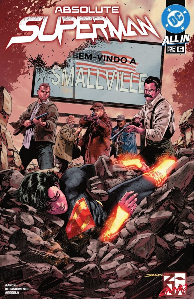 Absolute Superman #6 DOWNLOAD SÉRIE ANTERIOR PRÓXIMA Ficha ▼ Título Original: Absolute Superman Numeração: 06 DC Comics, Série de 2024, Volume 1 Data de Lançamento: Abril de 2025 Iniciativa: DC All In Arco: O Último Vestígio de Krypton Cronologia: Pós-Flashpoint Universo: Universo Absolute Sobre ▼ O Último Vestígio de Krypton – Epílogo: Filho de Smallville Absolute Superman História em Quadrinhos 22 Páginas Título Original: Last Dust of Krypton Epilogue: Son of SmallvilleEscrito por: Jason AaronDesenhos: Carmine Di GiandomenicoArte-Final: Carmine Di GiandomenicoCores: Ulises ArreolaLetras: Becca CareyTradução: Mad KenDiagramação: Phantom Sinopse ▼ Após uma jornada traumática, Kal-El chega à Terra e é encontrado por um casal de fazendeiros em dificuldades. Ele luta para se adaptar ao novo ambiente e controlar seus poderes emergentes, enquanto forma um laço com seus salvadores. No entanto, sua presença na Terra não passa despercebida, e forças poderosas e obscuras já estão se movendo em seu caminho. Capas ▼ Principal Desenhos: Rafa Sandoval Arte-Final: Rafa Sandoval Cores: Ulises Arreola Personagens: Superman (Kal-El); Moradores de Smallville não identificados _____________________________________ Variante Desenhos: David Talaski Arte-Final: David Talaski Cores: David Talaski Personagens: Superman (Kal-El) Nota: Esta capa possui uma variante sem logo _____________________________________ Variante Desenhos: Rahzzah Arte-Final: Rahzzah Cores: Rahzzah Personagens: Superman (Kal-El) _____________________________________ Variante Desenhos: Kaare Andrews Arte-Final: Kaare Andrews Cores: Kaare Andrews Personagens: Superman (Kal-El) _____________________________________ Variante Desenhos: Kaare Andrews Arte-Final: Kaare Andrews Cores: Kaare Andrews Personagens: Superman (Kal-El) _____________________________________ Aparecem na edição ▼ Kal-El / Superman(Absolute) Sol(Absolute) Brainiac(Absolute) Martha Kent(Absolute) Jonathan Kent(Absolute) Lois Lane(Absolute) Ra’s Al Ghul(Absolute) – Título Original: Absolute Superman Numeração: 06 DC Comics, Série de 2024, Volume 1 Data de Lançamento: Abril de 2025 Iniciativa: DC All In Arco: O Último Vestígio de Krypton Cronologia: Pós-Flashpoint Universo: Universo Absolute O Último Vestígio de Krypton – Epílogo: Filho de Smallville Absolute Superman História em Quadrinhos 22 Páginas Título Original: Last Dust of Krypton Epilogue: Son of SmallvilleEscrito por: Jason AaronDesenhos: Carmine Di GiandomenicoArte-Final: Carmine Di GiandomenicoCores: Ulises ArreolaLetras: Becca CareyTradução: Mad KenDiagramação: Phantom Após uma jornada traumática, Kal-El chega à Terra e é encontrado por um casal de fazendeiros em dificuldades. Ele luta para se adaptar ao novo ambiente e controlar seus poderes emergentes, enquanto forma um laço com seus salvadores. No entanto, sua presença na Terra não passa despercebida, e forças poderosas e obscuras já estão se movendo em seu caminho. Principal Desenhos: Rafa Sandoval Arte-Final: Rafa Sandoval Cores: Ulises Arreola Personagens: Superman (Kal-El); Moradores de Smallville não identificados _____________________________________ Variante Desenhos: David Talaski Arte-Final: David Talaski Cores: David Talaski Personagens: Superman (Kal-El) Nota: Esta capa possui uma variante sem logo _____________________________________ Variante Desenhos: Rahzzah Arte-Final: Rahzzah Cores: Rahzzah Personagens: Superman (Kal-El) _____________________________________ Variante Desenhos: Kaare Andrews Arte-Final: Kaare Andrews Cores: Kaare Andrews Personagens: Superman (Kal-El) _____________________________________ Variante Desenhos: Kaare Andrews Arte-Final: Kaare Andrews Cores: Kaare Andrews Personagens: Superman (Kal-El) _____________________________________ Kal-El / Superman(Absolute) Sol(Absolute) Brainiac(Absolute) Martha Kent(Absolute) Jonathan Kent(Absolute) Lois Lane(Absolute) Ra’s Al Ghul(Absolute) – Comentários: