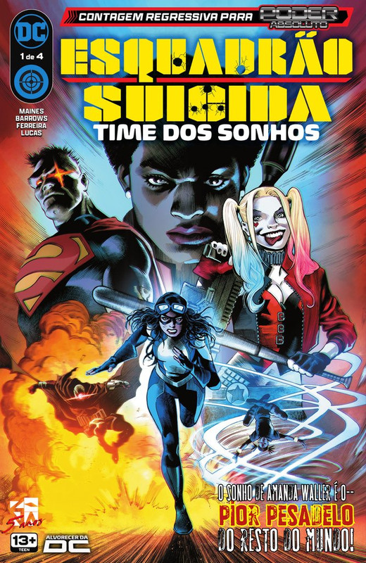 Esquadrão Suicida: Time dos Sonhos (2024) Sobre a série: Quando Amanda Waller tomar a iniciativa de assumir o poder supremo no UDC, nada ficará em seu caminho – nem mesmo o futuro. A partir dos eventos de TITÃS: MUNDO BESTIAL, surge a história de SONHADORA – a precognitiva caminhante dos sonhos que entrou em conflito com a vilã mais sedenta de poder da história do UDC. Com uma heroína superpoderosa que pode ver o futuro ao seu lado, o Esquadrão Suicida de Waller será finalmente imbatível? Junte-se a ARLEQUINA, BIZARRO, REI RELÓGIO, ALICE SOMBRIA e MORTÍFERO na luta pelo futuro da DC… e no próximo grande passo em direção ao evento cataclísmico de 2024. Título Original: Suicide Squad: Dream Team Editora: DC Comics Categoria: Série Limitada Total de Edições: 4 Data de Publicação: Março de 2024 até o presente Status: Finalizada Status na Zona Fantasma: Completa Destaque: Esquadrão Suicida Coleção: CROSSOVER Comentários: Veja mais: Esquadrão Suicida: Time dos Sonhos (2024) ByEgoiano dezembro 10, 2025 Uncategorized Crise Sombria nas Infinitas Terras: Justiça Jovem (2022) Sobre a série: Título Original: Dark… Read More Esquadrão Suicida: Time dos Sonhos #1 ByEgoiano dezembro 10, 2025 PA Prólogo Esq Suicd Poder Absoluto (2024) ByEgoiano dezembro 10, 2025 Uncategorized Crise Sombria nas Infinitas Terras: Mundos Sem uma Liga da Justiça: Batman #1 ByEgoiano dezembro 9, 2025 CS MSLJ Crise Sombria nas Infinitas Terras: Big Bang #1 ByEgoiano dezembro 9, 2025 CS OE Crise Sombria nas Infinitas Terras: Zona de Guerra #1 (2022) ByEgoiano dezembro 9, 2025 CS OE Crise Sombria nas Infinitas Terras: O Exército Sombrio #1 ByEgoiano dezembro 9, 2025 CS OE