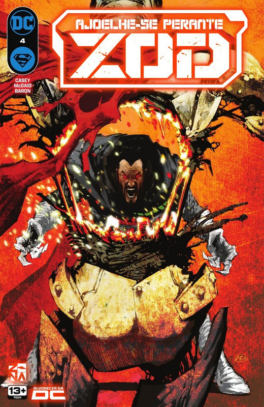 Ajoelhe-se Perante Zod #3 DOWNLOAD SÉRIE EDIÇÃO: #4 Ficha: Título Original: Kneel Before Zod #3 Data de Lançamento: Março de 2024 Iniciativa: Alvorecer da DC Sobre: Capítulo Três: Batalha Por Nova Kandor Título Original: Chapter Three: The War For New KandorEscrito por: Joe CaseyDesenhos: Dan McDaidArte-Final: Dan McDaidCores: David BaronLetras: Troy PeteriTradução: PhantomDiagramação: Phantom Sinopse: Em breve Capas: Editores Jillian Grant (Editora Assistente); Paul Kaminski (Editor) Capa Desenhos: Jason Shawn Alexander Arte-Final: Jason Shawn Alexander Cores: Jason Shawn Alexander Personagens: General Zod; Ursa Capa Variante Desenhos: Lucio Parrillo Arte-Final: Lucio Parrillo Cores: Lucio Parrillo Personagens: Ursa Capa Variante Desenhos: Mirko Colak Arte-Final: Mirko Colak Cores: Mirko Colak Personagens: General Zod Aparecem: Aparecem em Capítulo Três: Batalha Por Nova Kandor Personagens Principais: General Zod Personagens Coadjuvantes: Erradicador Drones Erradicadores Dinastia Zod Ursa (Morre) Nativos de Jekuul (Não Nominados) Antagonistas: Dissidentes khúndios Outros Personagens: Morte (Apenas Mencionada) Locais: Terra 0 Setor 2811 Sóis Gêmeos de Jekuul Jekuul/”Nova Kandor” Cidade Capital (Não Nominada) Itens: Lança de Pedra Solar Dispositivo de Químio-Eclipse (Primeira Aparição) Veículos: Aves de Ataque Nave de Guerra Khúndia Conceitos: — Notas: — Comentários: