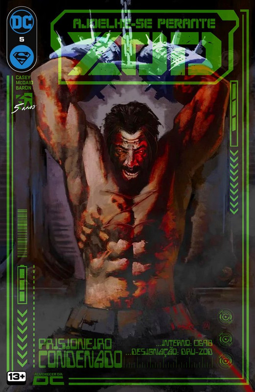 Ajoelhe-se Perante Zod #5 DOWNLOAD SÉRIE EDIÇÃO: #6 Ficha: Título Original: Kneel Before Zod #5 Data de Lançamento: Maio de 2024 Iniciativa: Alvorecer da DC Sobre: Capítulo Cinco: Cataratas de Fogo Título Original: Chapter Five: Fire FallsEscrito por: Joe CaseyDesenhos: Dan McDaidArte-Final: Dan McDaidCores: David BaronLetras: Troy PeteriTradução: PhantomDiagramação: Phantom Sinopse: Em breve Capas: Editores Jillian Grant (Editora Assistente); Paul Kaminski (Editor) Capa Desenhos: Jason Shawn Alexander Arte-Final: Jason Shawn Alexander Cores: Jason Shawn Alexander Personagens: General Zod Capa Variante Desenhos: Lucio Parrillo Arte-Final: Lucio Parrillo Cores: Lucio Parrillo Personagens: General Zod; Jor-El Capa Variante Desenhos: John Giang Arte-Final: John Giang Cores: John Giang Personagens: General Zod Aparecem: Aparecem em Capítulo Cinco: Cataratas de Fogo Personagens Principais: General Zod (Flashback e História Principal) Personagens Coadjuvantes: Legião de Zod Banyamano não nominado (Primeira Aparição) Dominador não nominado (Primeira Aparição) G’newtiano não nominado (Primeira Aparição) Robô da Nave-Prisão (Priemira Aparição) Antagonistas: Dinastia Zod (Apenas em Flashback) Pai do General Zod (Primeira Aparição; Não nominado) (Apenas em Flashback) Jor-El (Apenas em Flashback) (Também em uma visão) Kaffarianos (Todos Morrem) Diretor T’zz Gor-Tseffrin (Morre) Tropas de Choque (Todos Morrem) Tozo (Morre) Outros Personagens: Kryptonianos (Apenas em Flashback) Guilda da Ciência Kryptoniana (Apenas em Flashback) Exxoriano não nominado (Morre) Cidadelianos (Apenas Mencionados) União Militar Kryptoniana (Apenas Mencionada) Rao, o Deus Kryptoniano (Apenas Mencionado) Locais: Terra 0 (Flashback e História Principal) Krypton (Apenas em Flashback) Cataratas de Fogo Itens: Colares Inibidores Veículos: Nave-Prisão Kaffariana Conceitos: Interlac Notas: — Comentários: