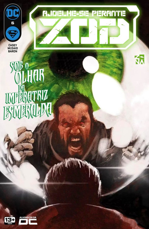 Ajoelhe-se Perante Zod #6 DOWNLOAD SÉRIE EDIÇÃO: #7 Ficha: Título Original: Kneel Before Zod #6 Data de Lançamento: Junho de 2024 Iniciativa: Alvorecer da DC Sobre: Capítulo Seis: O Olho Sabe Título Original: Chapter Six: Eye KnowEscrito por: Joe CaseyDesenhos: Dan McDaidArte-Final: Dan McDaidCores: David BaronLetras: Troy PeteriTradução: PhantomDiagramação: Phantom Sinopse: Em breve Capas: Editores Jillian Grant (Editora Assistente); Paul Kaminski (Editor); Kathleen Wisneski (Editora) Capa Desenhos: Jason Shawn Alexander Arte-Final: Jason Shawn Alexander Cores: Jason Shawn Alexander Personagens: General Zod; Imperatriz Esmeralda Capa Variante Desenhos: Lucio Parrillo Arte-Final: Lucio Parrillo Cores: Lucio Parrillo Personagens: General Zod; Jor-El Capa Variante Desenhos: Ian Churchill Arte-Final: Ian Churchill Cores: Ian Churchill Personagens: General Zod; Superman (Clark Kent) Aparecem: Aparecem em Capítulo Seis: O Olho Sabe Personagens Principais: General Zod Personagens Coadjuvantes: Legião de Zod Myrrz (Primeira Aparição) Staph (Não Nominado) Talokite não nominado (Primeira Aparição) Marciano Branco não nominado (Primeira Aparição) Antagonistas: Imperatriz Esmeralda/Falyce (Pós-Renascimento) (Primeira Aparição) Fruzgin (Nome verdadeiro revelado) (Morre) G’raffe (Nome verdadeiro revelado) (Aparentemente morre) Jor-El (Em uma visão) UEL-9 (Nome verdadeiro revelado) Outros Personagens: Conselho dos Planetas Unidos (Nos bastidores) Ministro da Defesa Thanagariano/”Tohru Nodu” (Holograma) Kaffarianos (Falecidos) (Apenas Mencionados) Kryptonianos (Apenas Mencionados) Dinastia Zod (Apenas Mencionada) Lor-Zod (Apenas Mencionado) Tamaraneanos (Apenas Mencionados) Tohru Nodu (Apenas Mencionado) Tozo (Falecido) (Apenas Mencionado) Tyrrazianos (Apenas Mencionados) Locais: Terra 0 Setor 0 Oa (Apenas Mencionado) Setor 2811 Jekuul/”Nova Kandor” (Apenas Mencionado) Setor 2813 Krypton (Destruído) (Apenas Mencionado) Itens: Colares Inibidores Olho Esmeralda Veículos: Abandono UPCC (Nome verdadeiro revelado) Conceitos: Espectro Eletromagnético Emocional Magia Notas: O Ministro da Defesa Thanagariano é erroneamente chamado de “Tohru Nodu”, mas na verdade é o líder Thanagariano da Ordem Unida. O traje de Zod nesta edição lembra o usado por sua contraparte do Donnerverso no filme Superman II. Comentários: